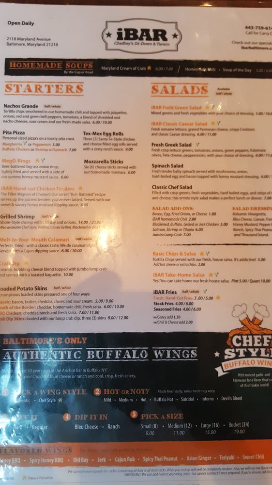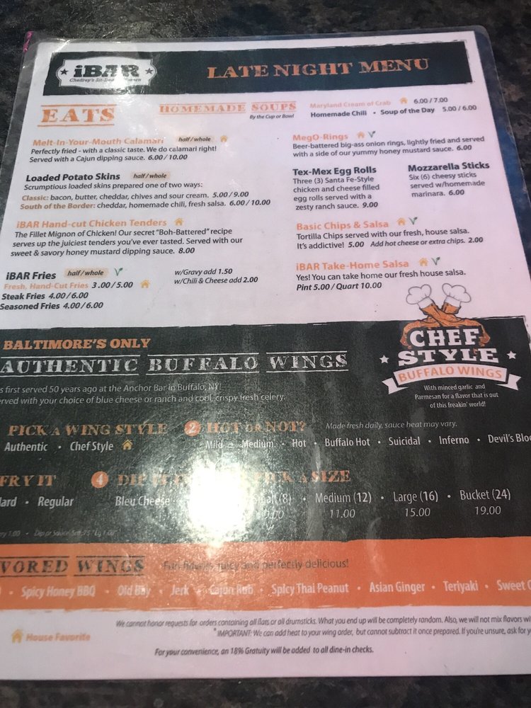 iBar, a sports bar located in Baltimore, MD, offers a diverse range of American cuisine with a twist. Known for its exceptional wings, the menu also features options like Italian, Mexican, and vegetarian dishes. Customers rave about the flavorful honey old bay wings and the unique "chef-style" buffalo wings. The cozy atmosphere, friendly staff, and extensive menu make iBar a go-to spot for lunch, dinner, or late-night bites. While service can be a bit slow at times, the delicious food and reasonably priced drinks make it worth the wait. With outdoor seating, a pool table, and happy hour specials, iBar is the perfect place to unwind with friends and enjoy a satisfying meal. Don't miss out on this hidden gem in Station North!